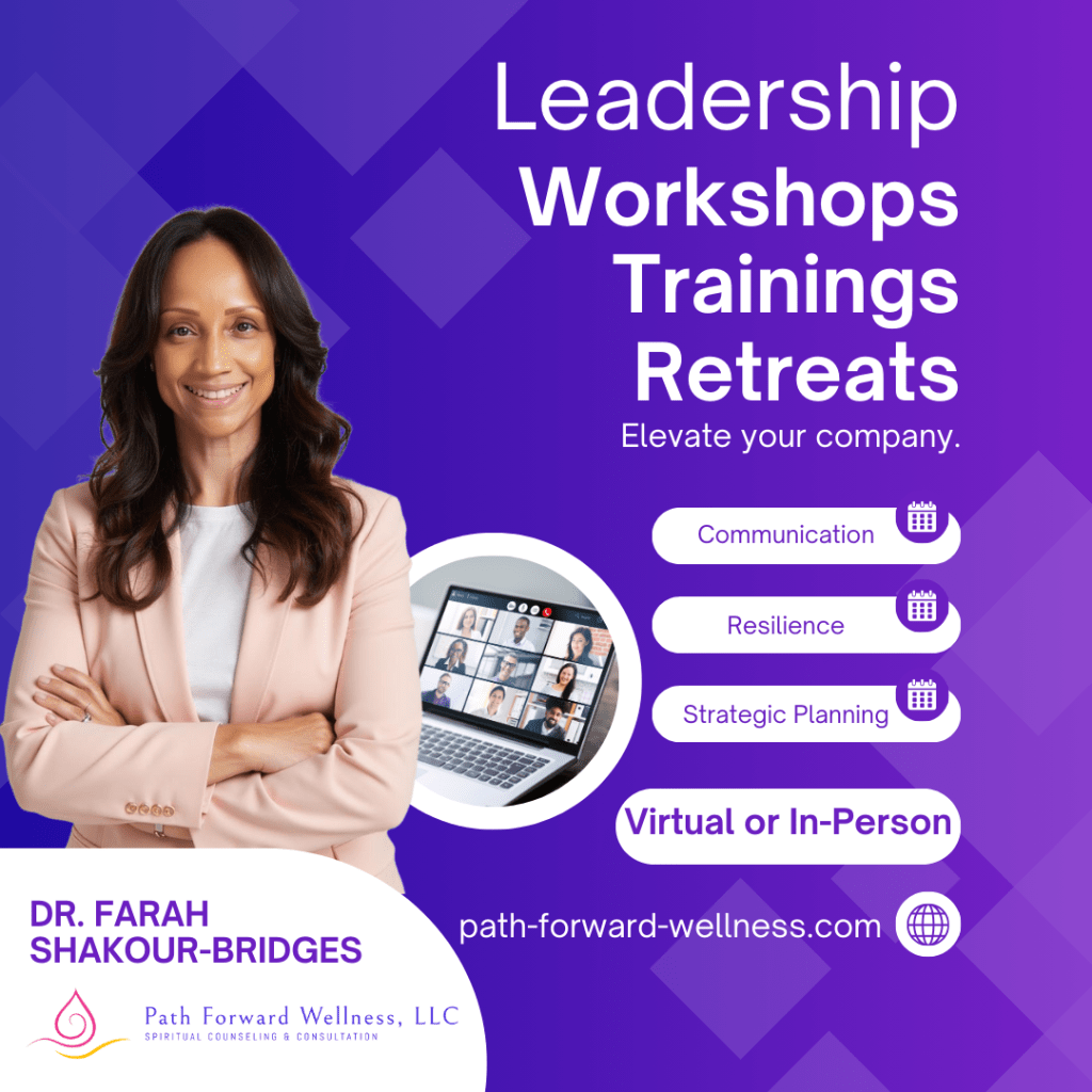 Book a consultation with Dr. Farah below to explore how she can help your business or organization reach new heights.